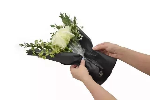 3、透明包装纸覆盖:在绿色包装纸外部,再裹上一层透明包装纸,增加神秘感,同时保护花束。