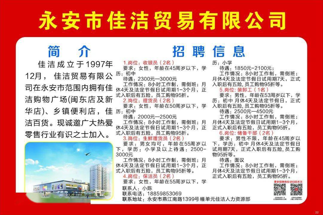本文详细介绍了浏阳永安地区的最新招聘信息,随着当地经济的发展和产业结构的优化升级,各类企业对于人才的需求日益旺盛,您可以根据自身的技能和兴趣找到适合自己的工作岗位,实现自己的职业价值,希望本文能为您的求职之路提供有益的参考和帮助。